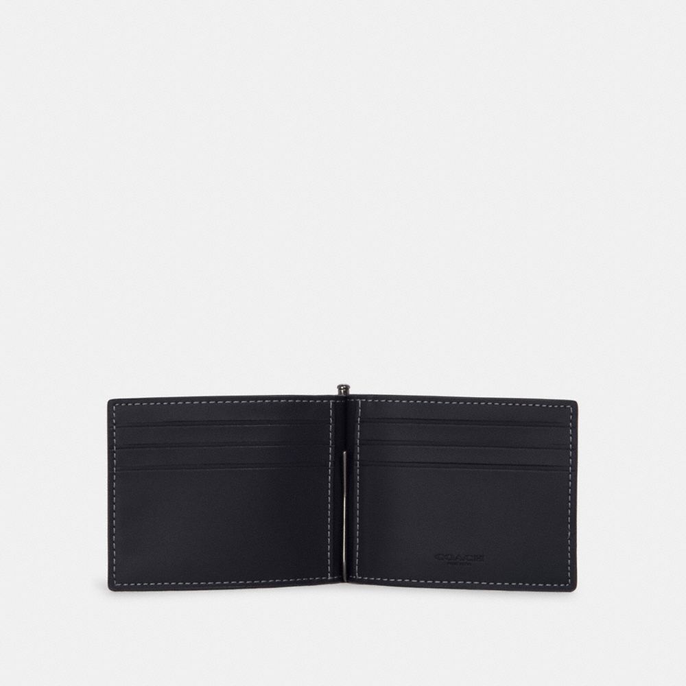COACH FACTORY OUTLET PRICE CHART - CH089 - SLIM MONEY CLIP BILLFOLD WALLET WITH PLAID PRINT - GUNMETAL/MIDNIGHT NAVY MULTI