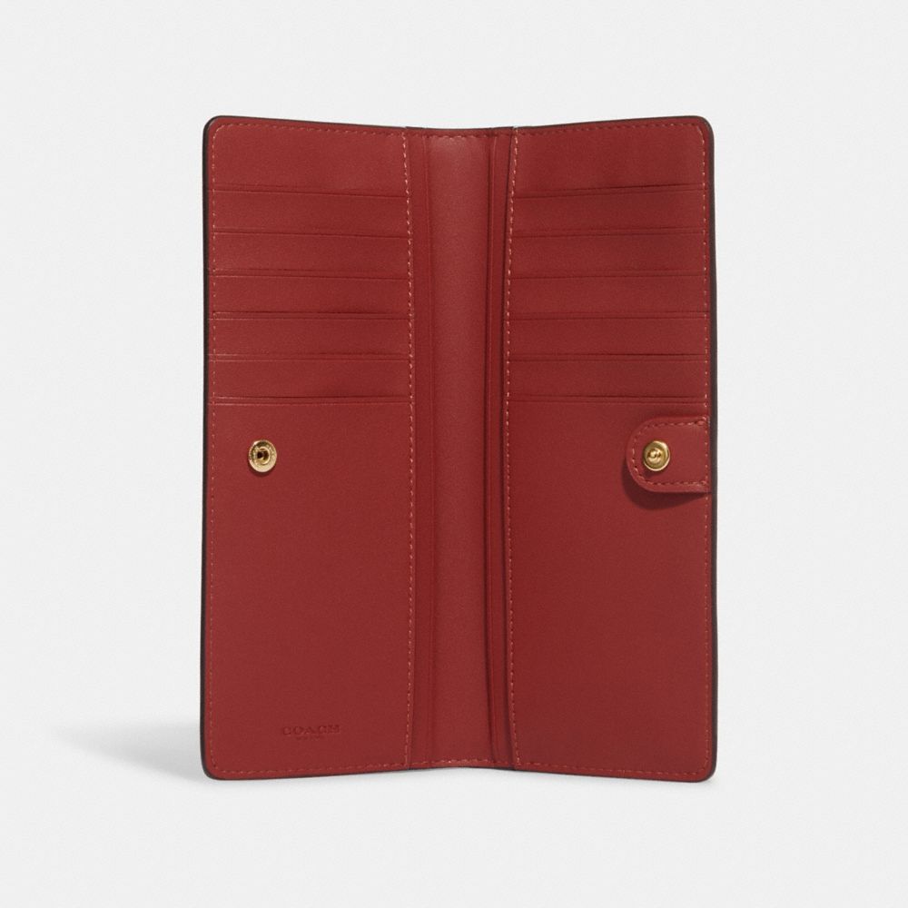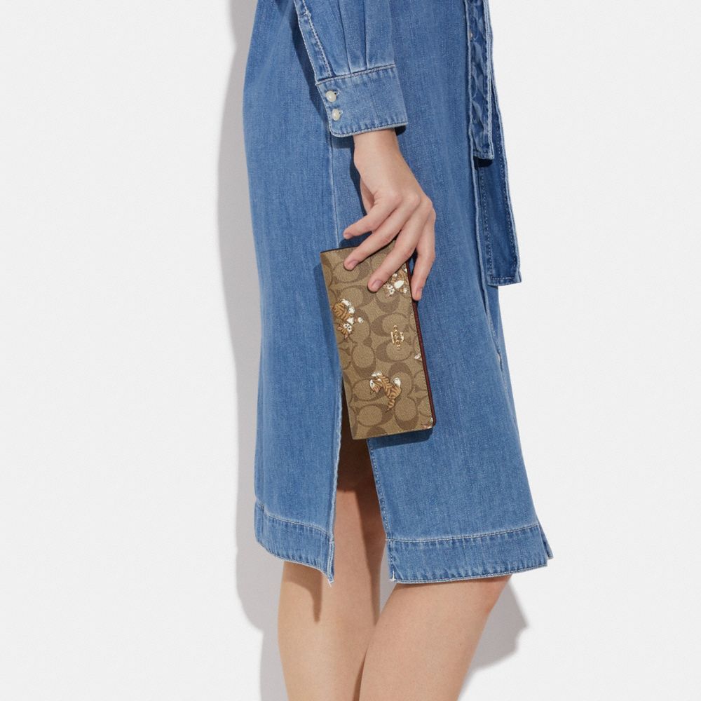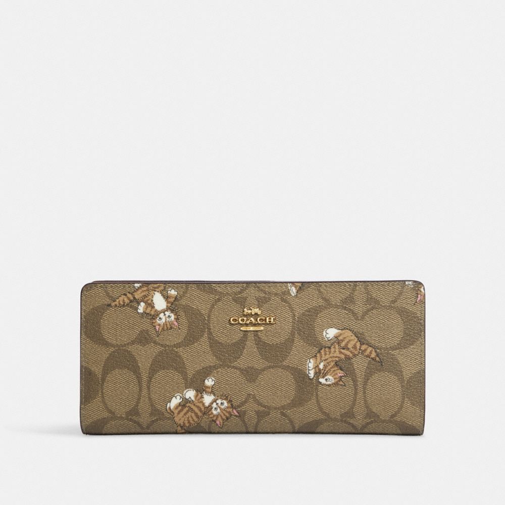 COACH FACTORY OUTLET PRICE CHART - CC926 - SLIM WALLET IN SIGNATURE CANVAS WITH DANCING KITTEN PRINT - GOLD/KHAKI MULTI