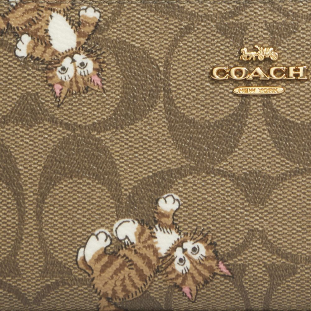 SLIM WALLET IN SIGNATURE CANVAS WITH DANCING KITTEN PRINT (COACH CC926)
