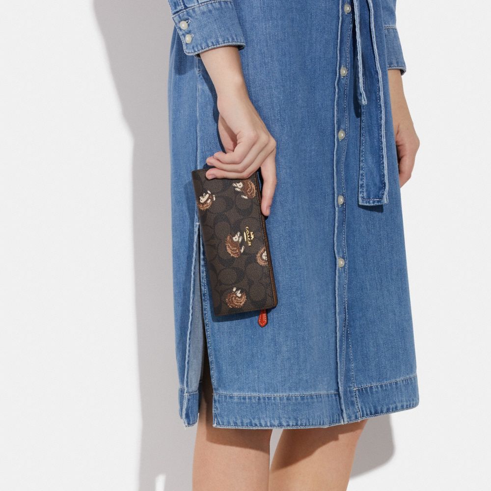 COACH FACTORY OUTLET PRICE CHART - CC928 - SLIM WALLET IN SIGNATURE CANVAS WITH HEDGEHOG PRINT - GOLD/BROWN BLACK MULTI