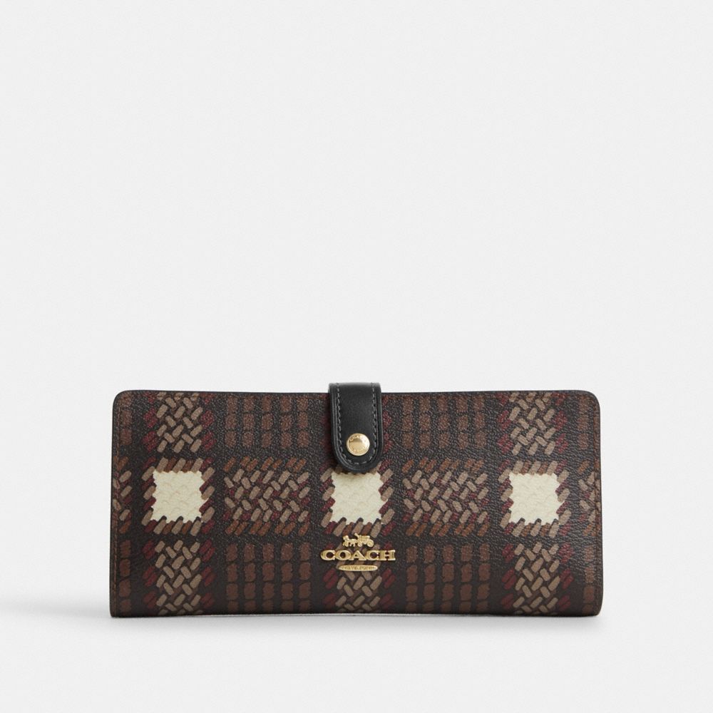 COACH FACTORY OUTLET PRICE CHART - CN015 - SLIM WALLET WITH BRUSHED PLAID PRINT - GOLD/BROWN MULTI