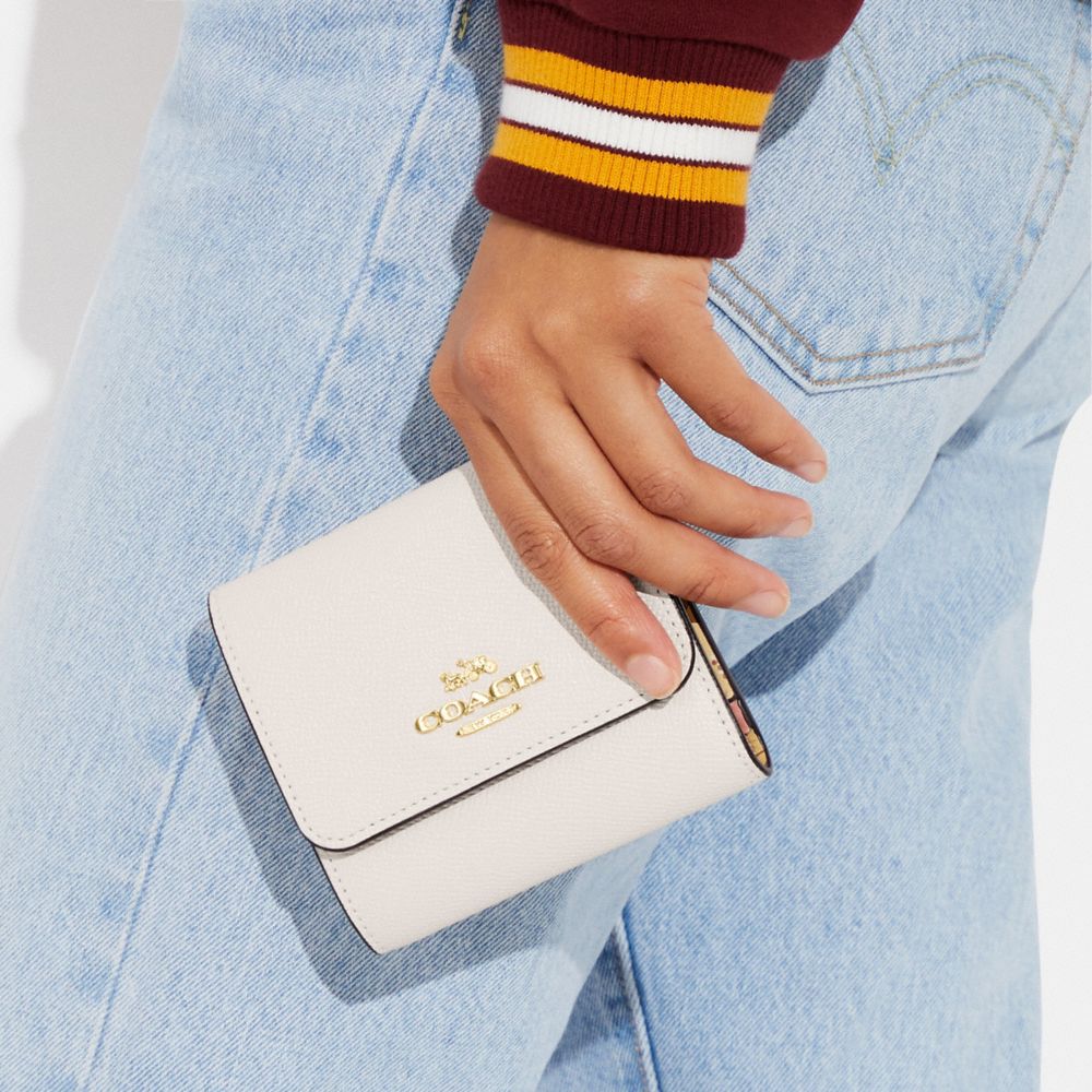 COACH FACTORY OUTLET PRICE CHART - CH604 - SMALL TRIFOLD WALLET WITH FLORAL CLUSTER PRINT INTERIOR - GOLD/CHALK MULTI
