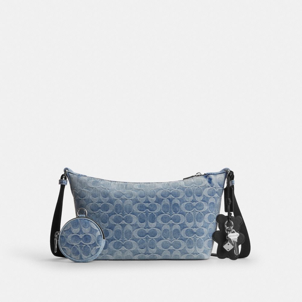 SMALL FINN CROSSBODY WITH POUCH IN LOVED SIGNATURE DENIM (COACH CDY53)