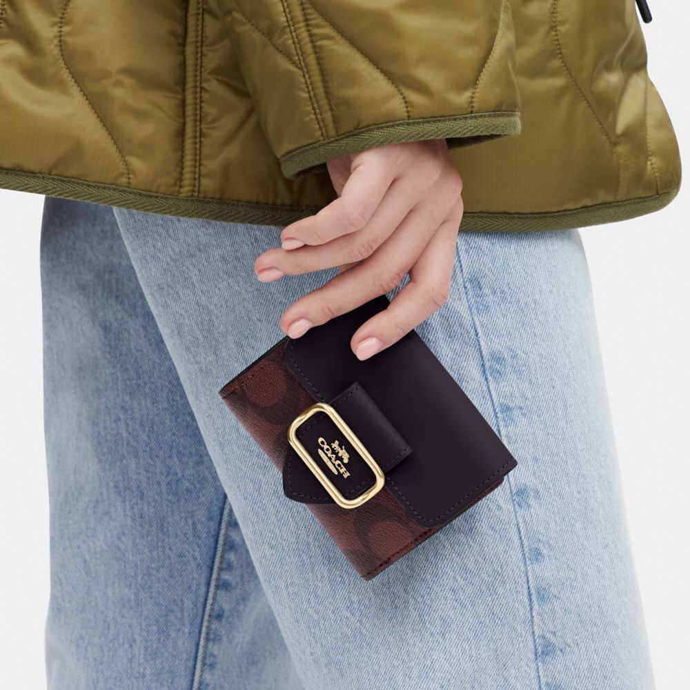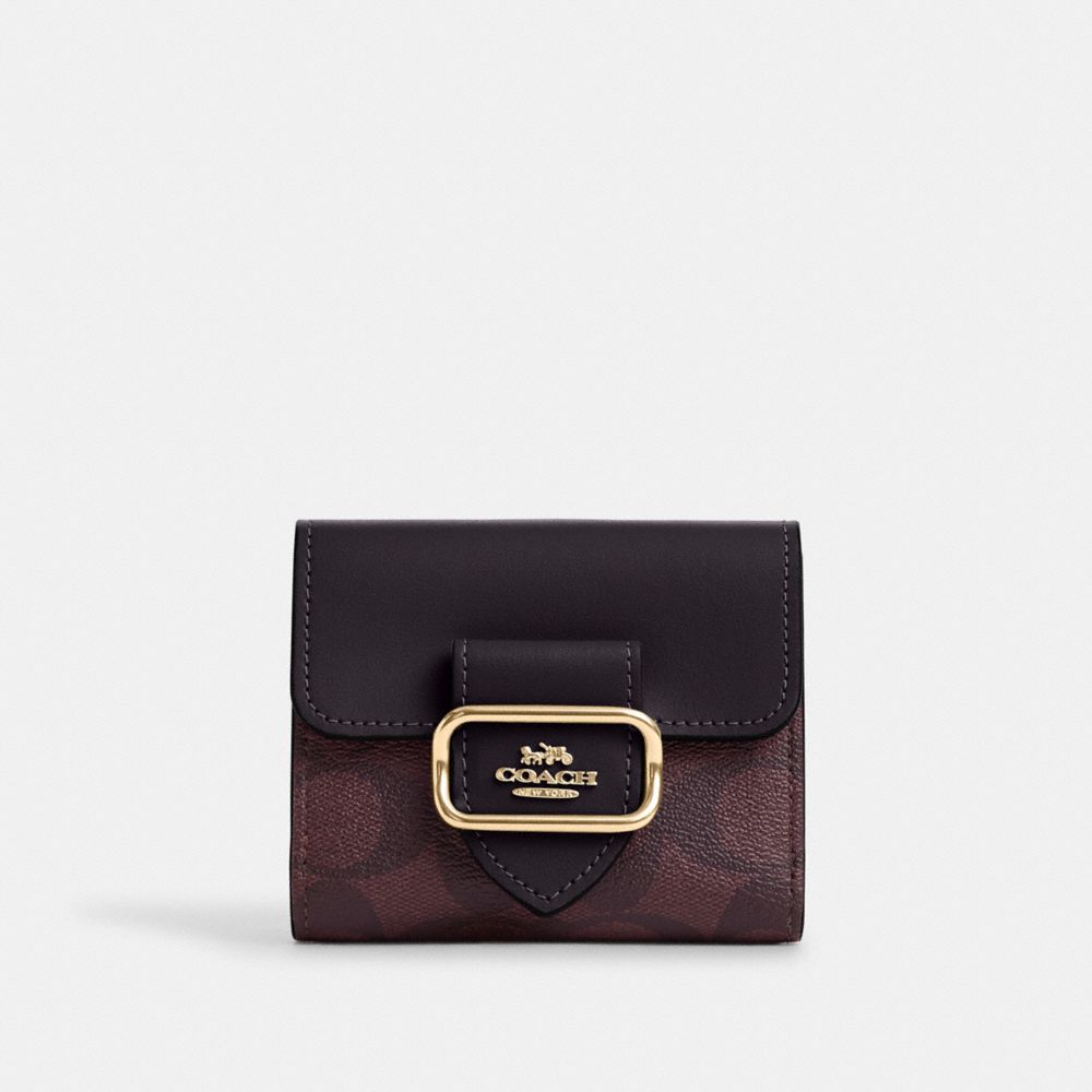 COACH FACTORY OUTLET PRICE CHART - CL655 - SMALL MORGAN WALLET IN SIGNATURE CANVAS - GOLD/OXBLOOD MULTI