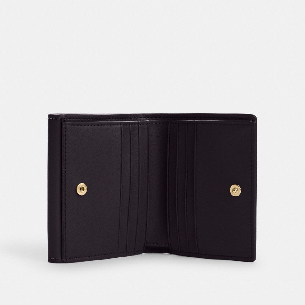| Signature coated canvas and smooth leather | Six credit card slots | Full-length bill compartment | Snap closure | Outside snap coin pocket | 4 1/4" (L) x 3 3/4" (H)|Style No. CL655|