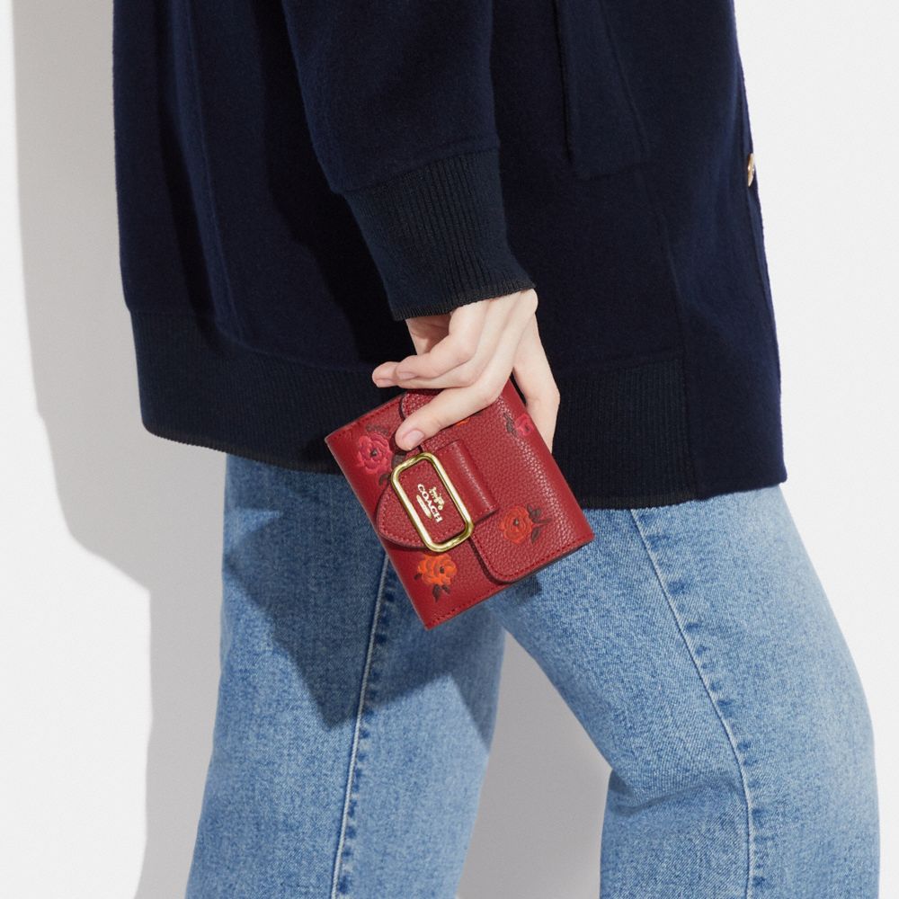COACH FACTORY OUTLET PRICE CHART - CE669 - SMALL MORGAN WALLET WITH PEONY PRINT - IM/RED APPLE MULTI