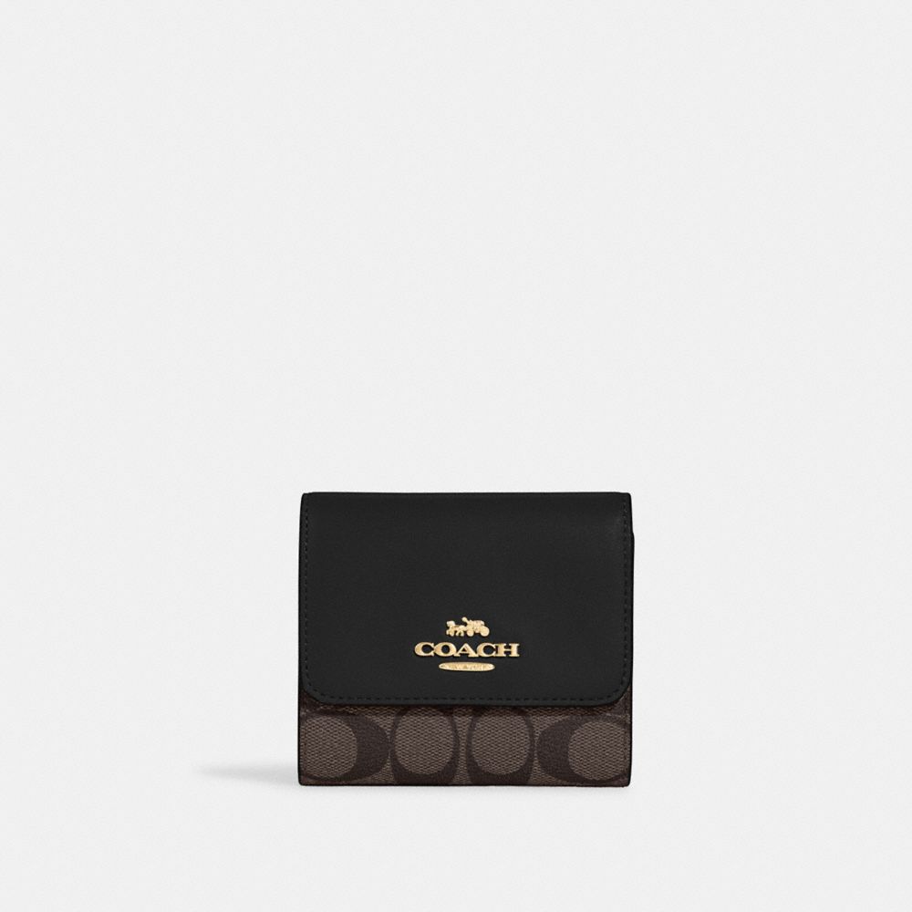 COACH FACTORY OUTLET PRICE CHART - CE930 - SMALL TRIFOLD WALLET IN BLOCKED SIGNATURE CANVAS - GOLD/BROWN BLACK