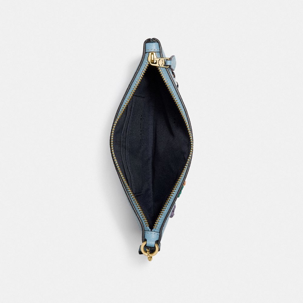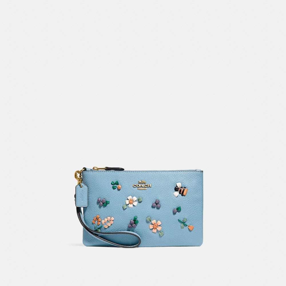 COACH FACTORY OUTLET PRICE CHART - C3815 - SMALL WRISTLET WITH FLORAL EMBROIDERY - BRASS/AZURE