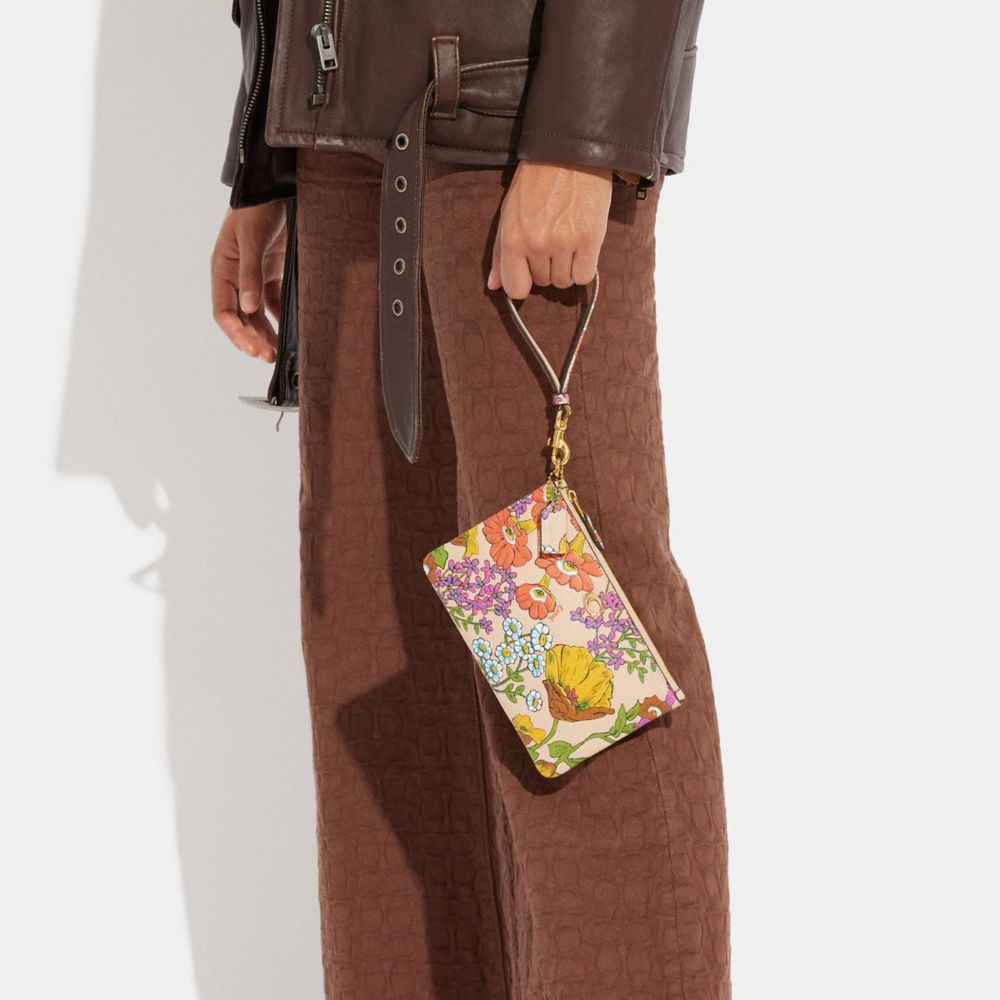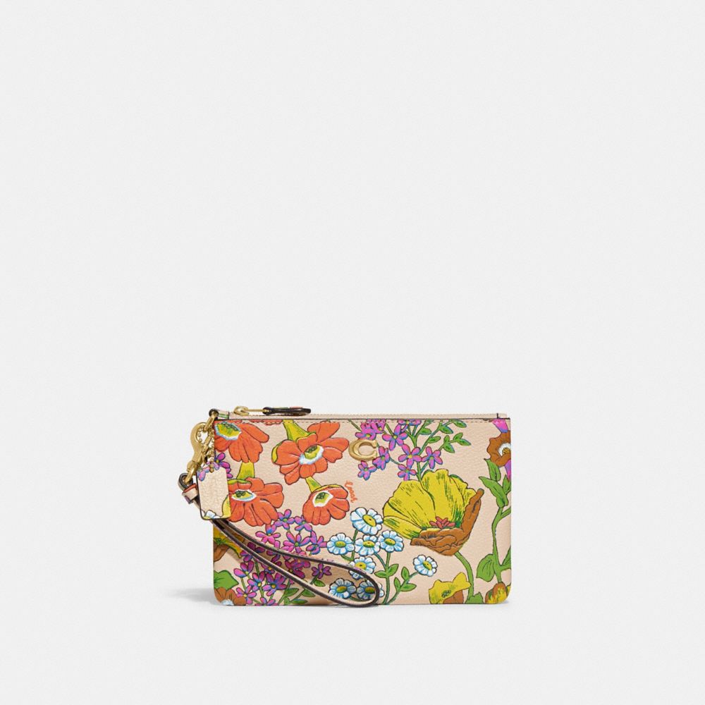 COACH FACTORY OUTLET PRICE CHART - CJ374 - SMALL WRISTLET WITH FLORAL PRINT - BRASS/IVORY MULTI