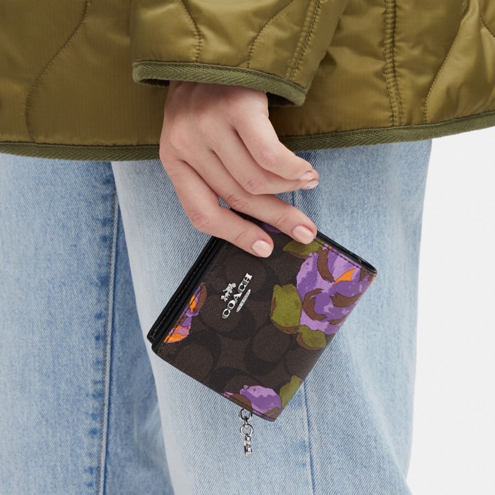 COACH FACTORY OUTLET PRICE CHART - CL664 - SNAP WALLET IN SIGNATURE CANVAS WITH ROSE PRINT - SV/BROWN/IRIS MULTI