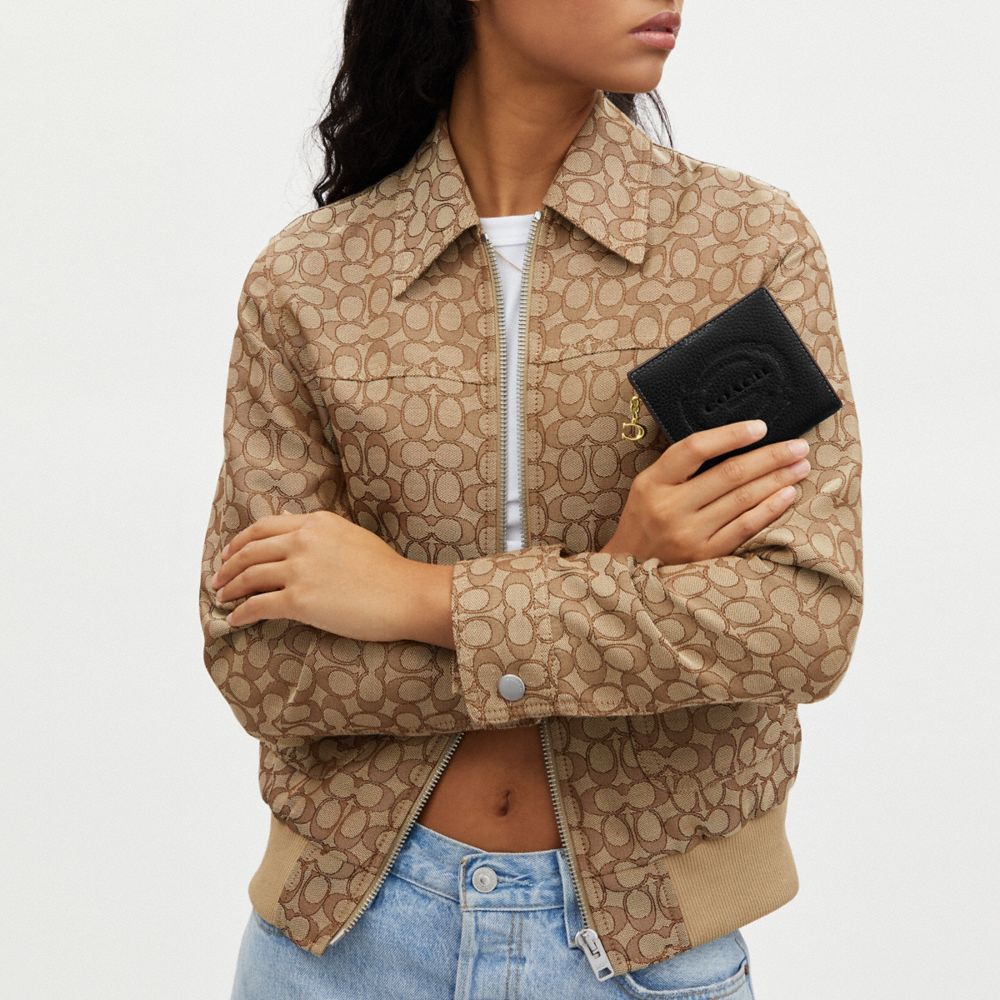 | Refined pebble leather | Three credit card slots | ID window | Full-length bill compartment | Snap closure | Outside zip coin pocket | 4 1/4" (L) x 3 1/2" (H) x 1" (W)|Style No. CM216|