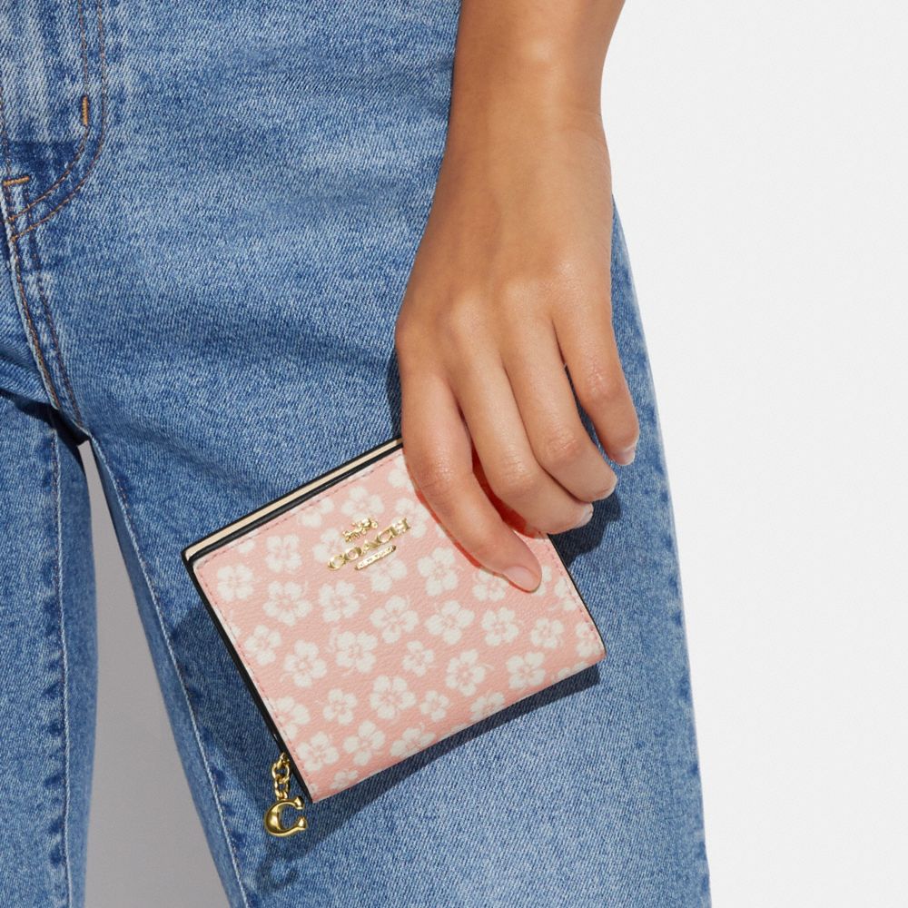 COACH FACTORY OUTLET PRICE CHART - CA782 - SNAP WALLET WITH GRAPHIC DITSY FLORAL PRINT - GOLD/PINK MULTI