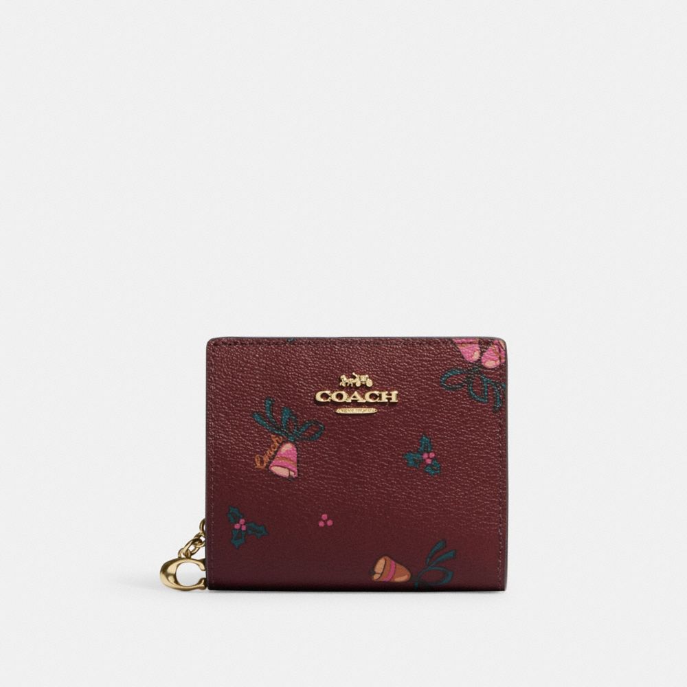 SNAP WALLET WITH HOLIDAY BELLS PRINT (COACH CF351)