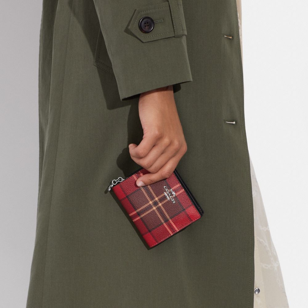 COACH FACTORY OUTLET PRICE CHART - CC810 - SNAP WALLET WITH TARTAN PLAID PRINT - SV/RED/BLACK MULTI