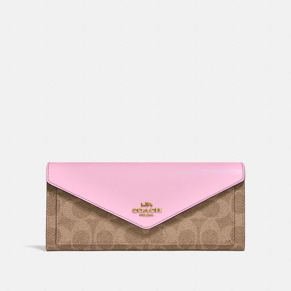 COACH FACTORY OUTLET PRICE CHART - 31547 - SOFT WALLET IN COLORBLOCK SIGNATURE CANVAS - B4/TAN BLOSSOM