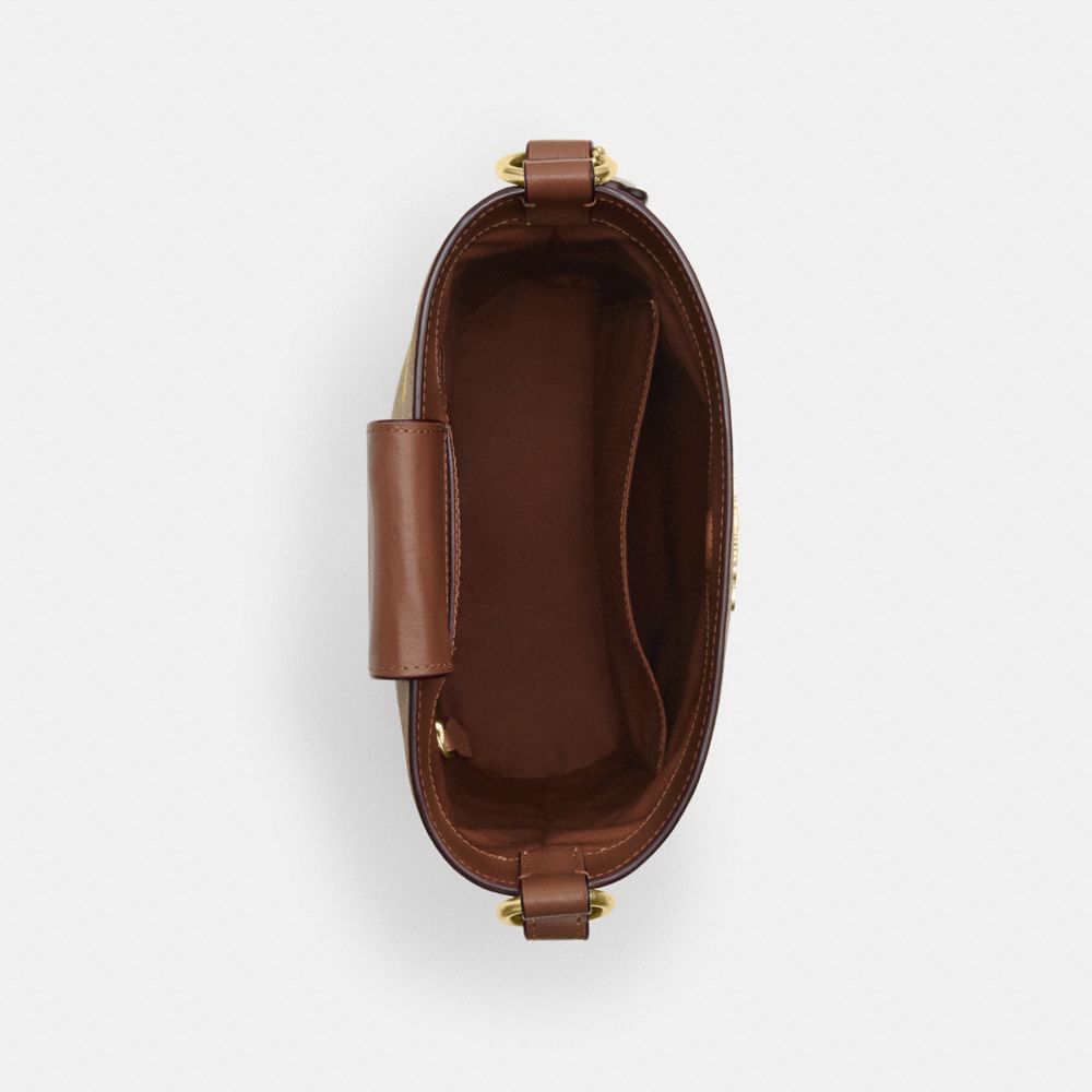 | Signature coated canvas and smooth leather | Inside zip and multifunction pockets | Magnetic snap closure, fabric lining | Adjustable strap with 22 1/2" drop for shoulder or crossbody wear | 8 1/2" (L) x 8 3/4" (H) x 4 1/4" (W)|Style No. CR155|