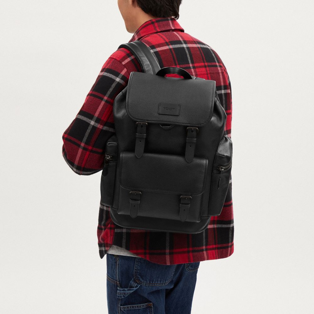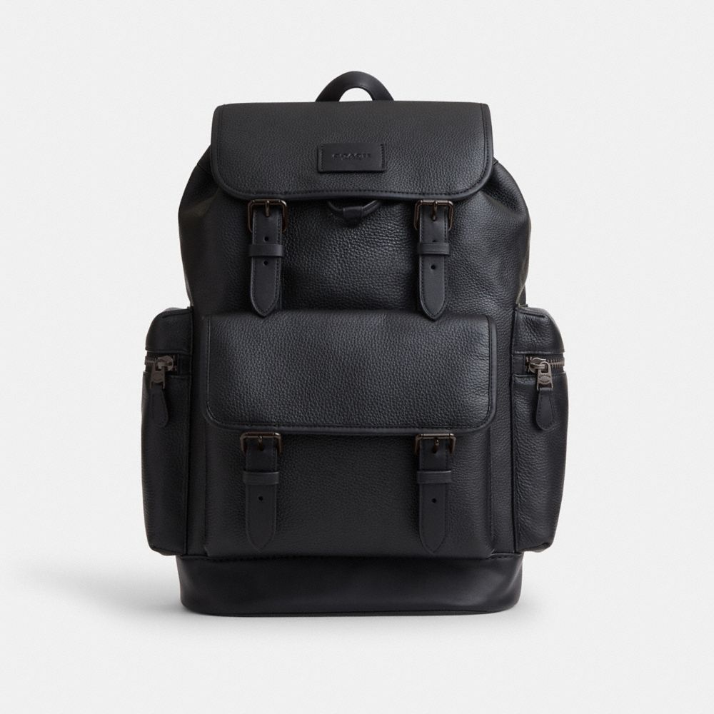 | Refined pebble leather and smooth calf leather | Inside zip, cell phone and multifunction pockets | Inside tech sleeve | Drawstring and speedclip closures, fabric lining | Top handle with 3 1/4" drop | Outside zip and flap pockets | Adjustable shoulder straps | Luggage sleeve | 11 1/4" (L) x 17 3/4" (H) x 6 1/2" (W)|Style No. CP046|