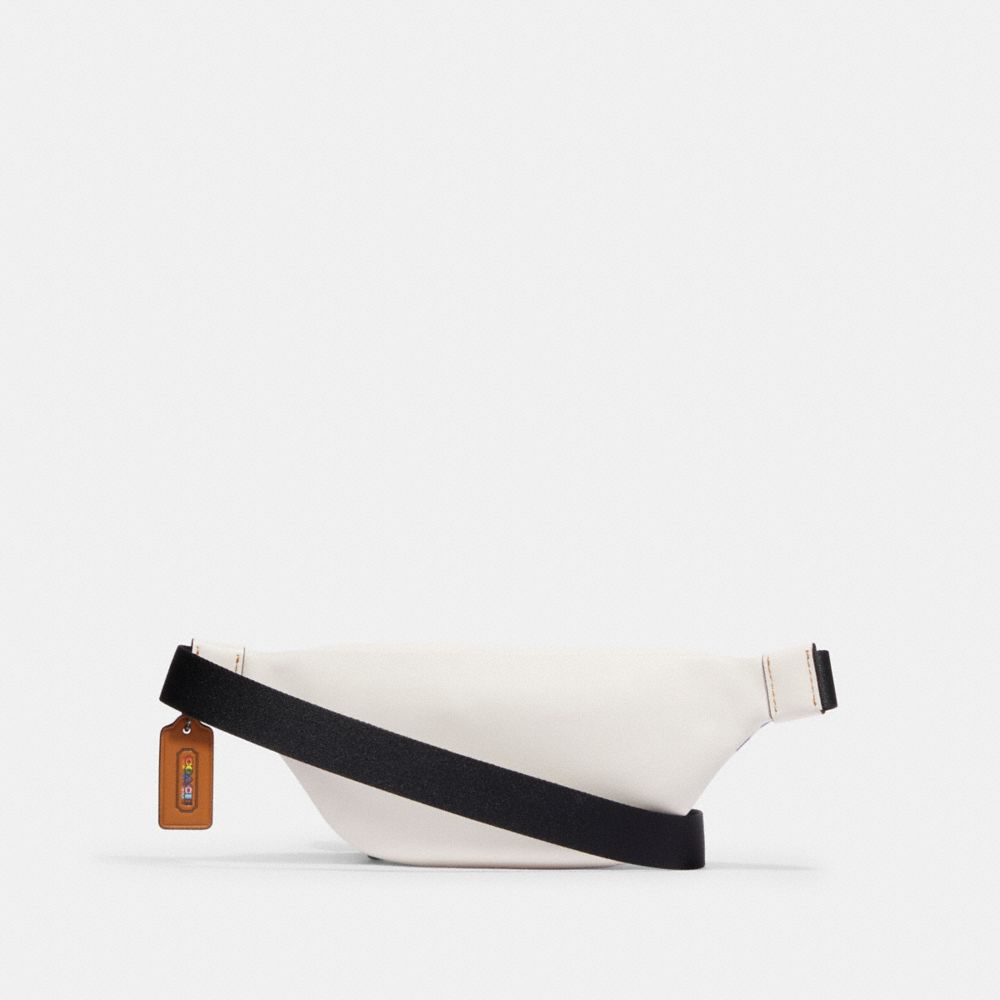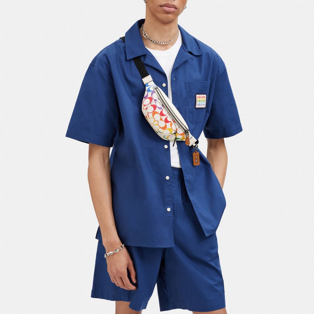 | Signature coated canvas and smooth calf leather | Zip closure, fabric lining | Outside zip pocket | Adjustable strap with 45 1/4" length for wear at waist | 9 1/2" (L) x 4 1/4" (H) x 2 1/2" (W) | Celebrating LGBTQIA+ communities everywhere, this month and every month. This year marks a decade of partnership between the Coach Foundation and the Hetrick-Martin Institute, and continuing partnerships with the Point Foundation and CenterLink Community of LGBTQ Centers. All three organizations create supportive environments where LGBTQIA+ young people can thrive. Learn more at coach.com/coachfoundation.|Style No. CJ682|