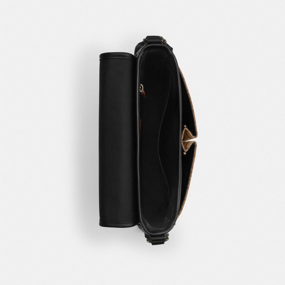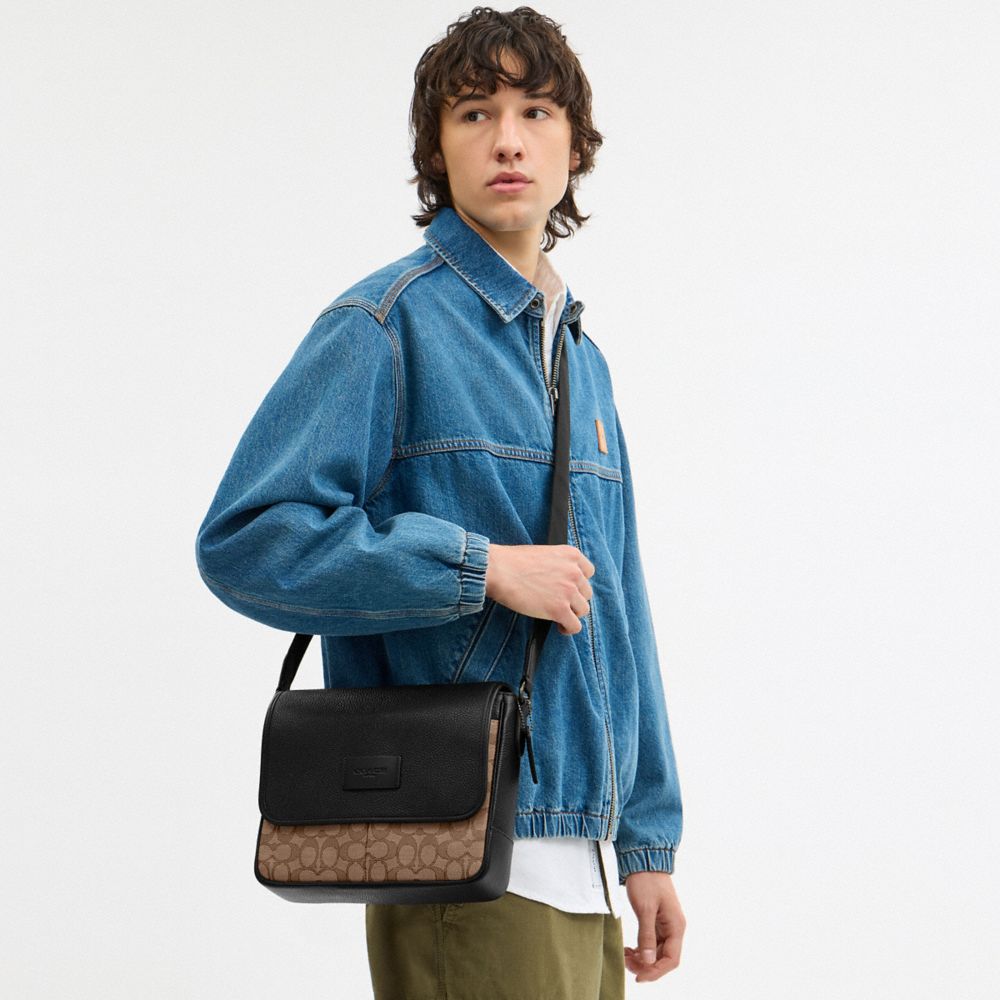 | Signature jacquard, refined pebble leather and smooth calf leather | Inside zip and multifunction pockets | Magnetic snap closure, fabric lining | Outside open pocket | Adjustable strap with 25" drop for shoulder or crossbody wear | 10" (L) x 8 1/4" (H) x 2 3/4" (W) | This Coach piece is crafted of our environmentally conscious Signature jacquard made from a blend of organic cotton and recycled plastic bottles|Style No. CE534|