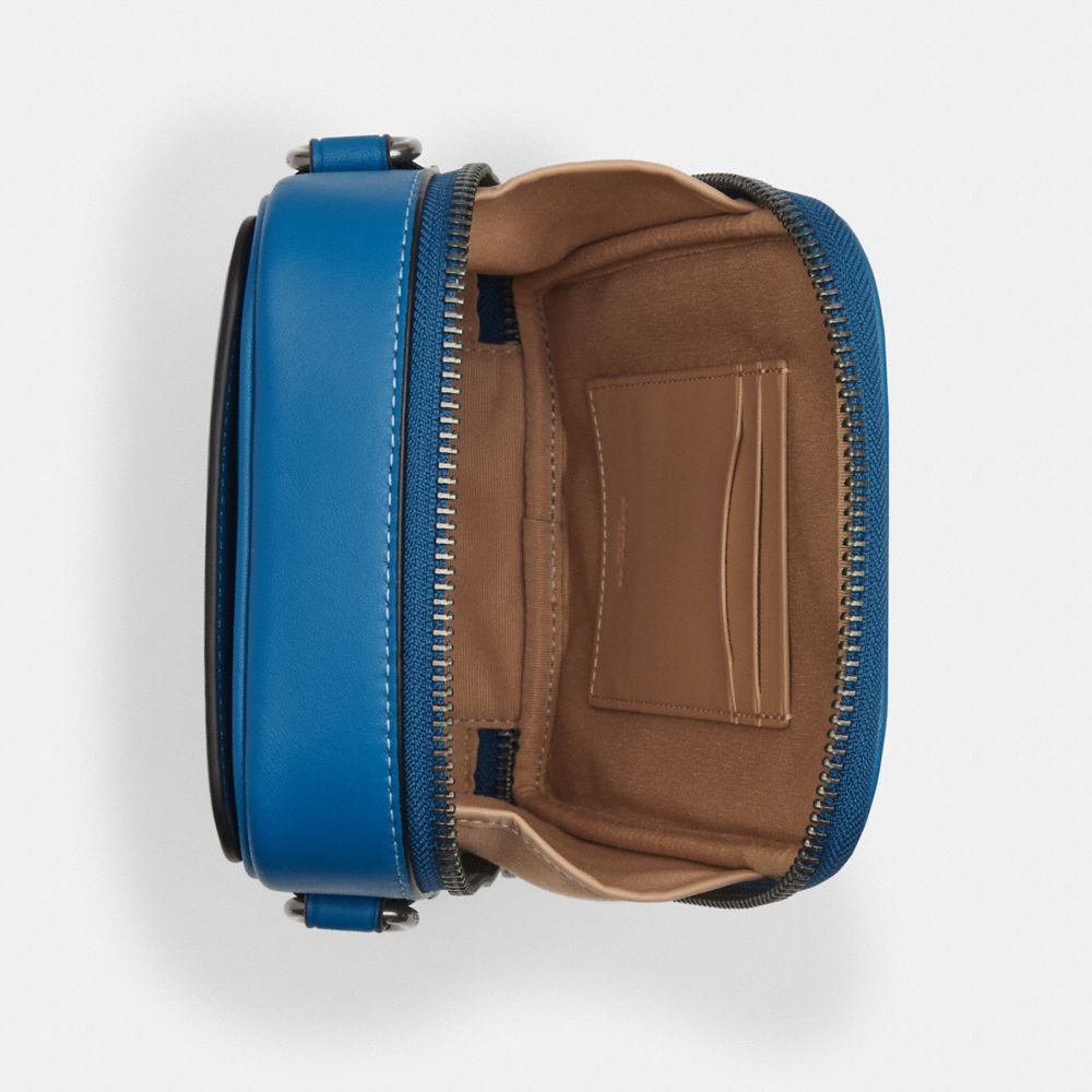 | Smooth calf leather and printed coated canvas | Three credit card slots | Zip closure, fabric lining | Detachable strap with 21" drop for shoulder or crossbody wear | 5" (L) x 7" (H) x 2" (W)|Style No. CR307|