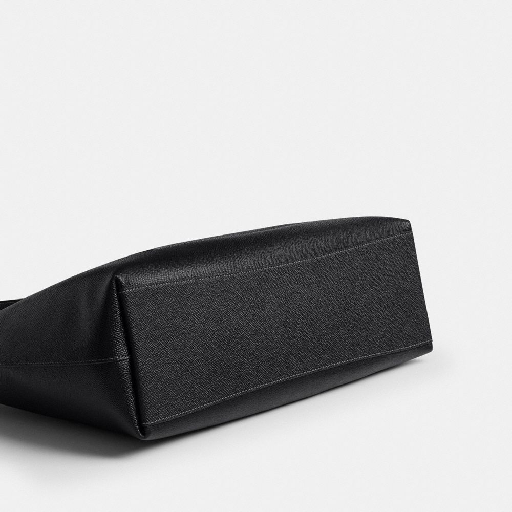 Crossgrain leather and coated canvas| Inside zip, cell phone and multifunction pockets| Zip-top closure, recycled polyester lining| Handles with 10 1/2" drop| Outside zip pocket| 13 3/4" (L) x 10 1/4" (H) x 5" (W)|Style No. CCD71