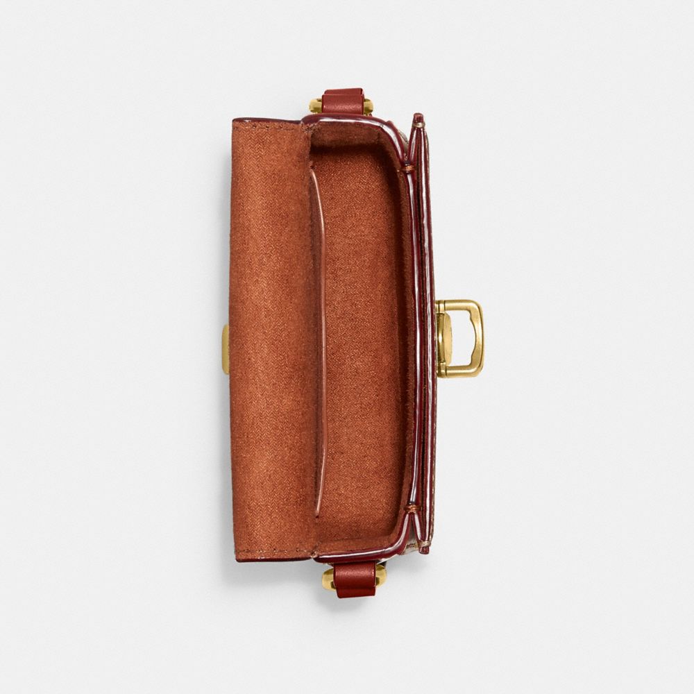 | Signature patent leather and refined calf leather | Inside multifunction pocket | Pushlock closure, fabric lining | Outside open pocket | Adjustable strap with 21 1/2" drop for shoulder or crossbody wear | 4 3/4" (L) x 3 1/4" (H) x 1 3/4" (W)|Style No. CH786|