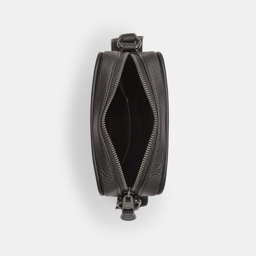 | Signature coated canvas, refined pebble leather and smooth calf leather | Inside multifunction pocket | Zip closure, fabric lining | Outside open pocket | Detachable strap with 28" drop for shoulder or crossbody wear | 6 1/4" (L) x 8 1/4" (H) x 2" (W)|Style No. CAT79|