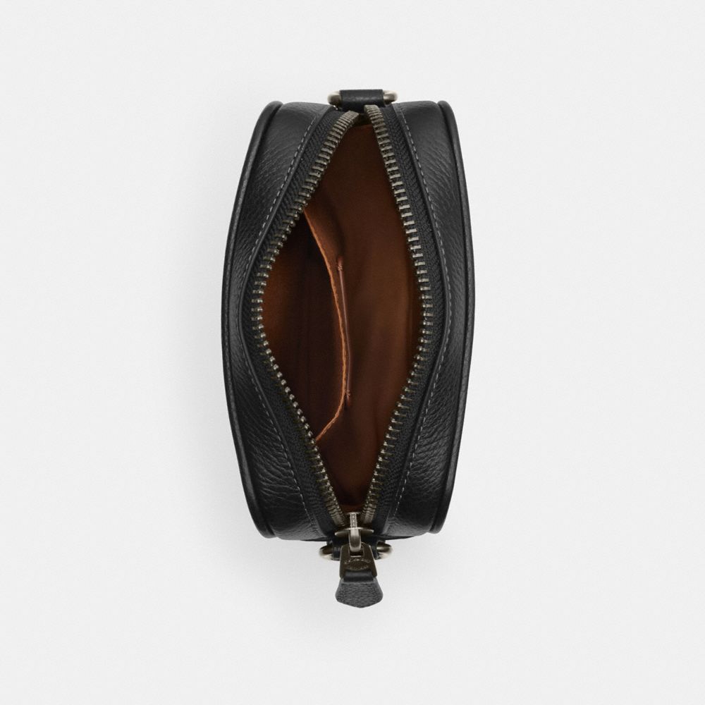 | Refined pebble leather and Signature coated canvas | Inside multifunction pockets | Zip closure, fabric lining | Outside open pocket | Detachable strap with 24" drop for shoulder or crossbody wear | 6 1/4" (L) x 8 1/4" (H) x 2" (W)|Style No. CU200|