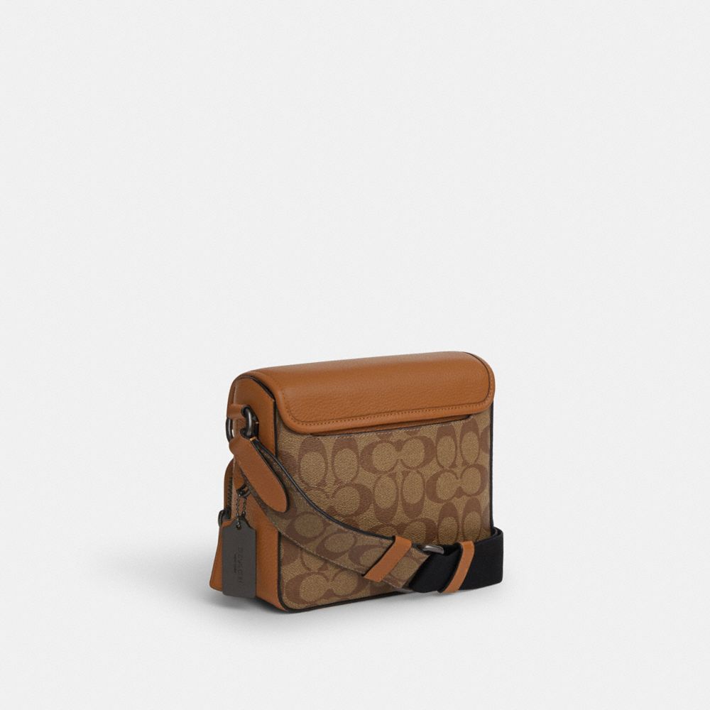 COACH FACTORY OUTLET PRICE CHART - CS604 - SULLIVAN FLAP CROSSBODY BAG IN COLORBLOCK SIGNATURE CANVAS - GUNMETAL/LIGHT SADDLE MULTI