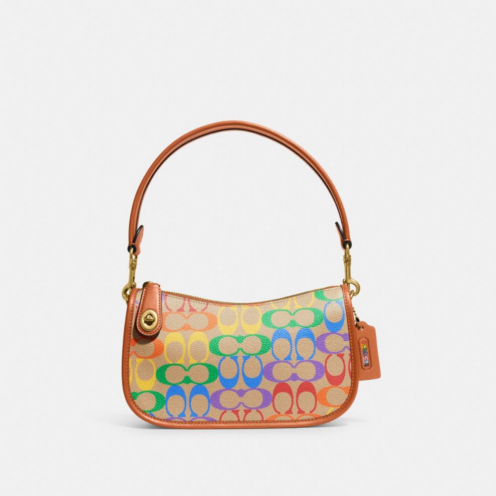 COACH FACTORY OUTLET PRICE CHART - CA100 - SWINGER IN RAINBOW SIGNATURE CANVAS - BRASS/TAN HAZELNUT MULTI
