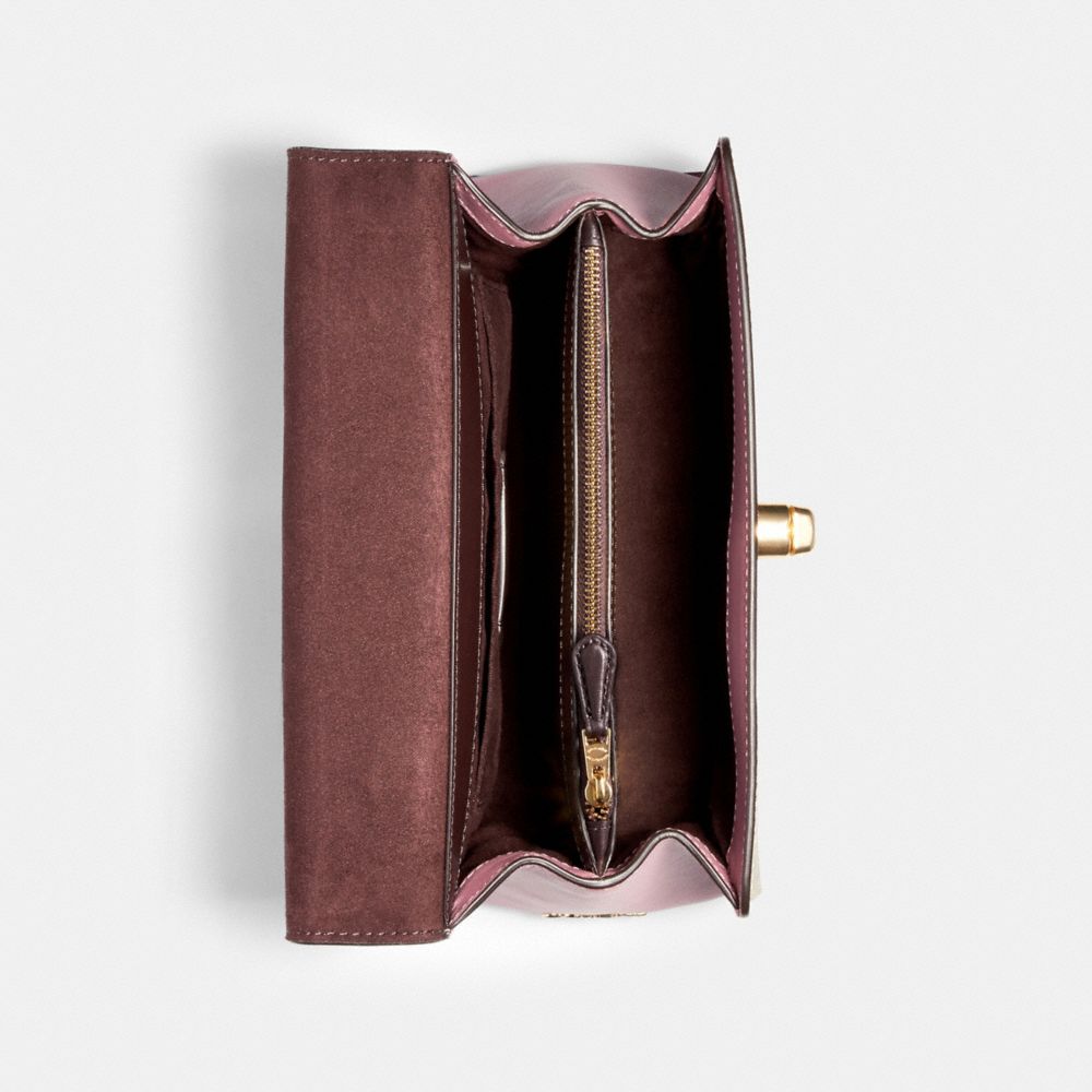 Signature coated canvas and smooth leather| Inside zip and multifunction pockets| Turnlock closure, fabric lining| Top handle with 4 3/4" drop| Outside slip pocket| Detachable strap with 22" drop for shoulder or crossbody wear| 9 3/4" (L) x 7" (H) x 4 1/4" (W)