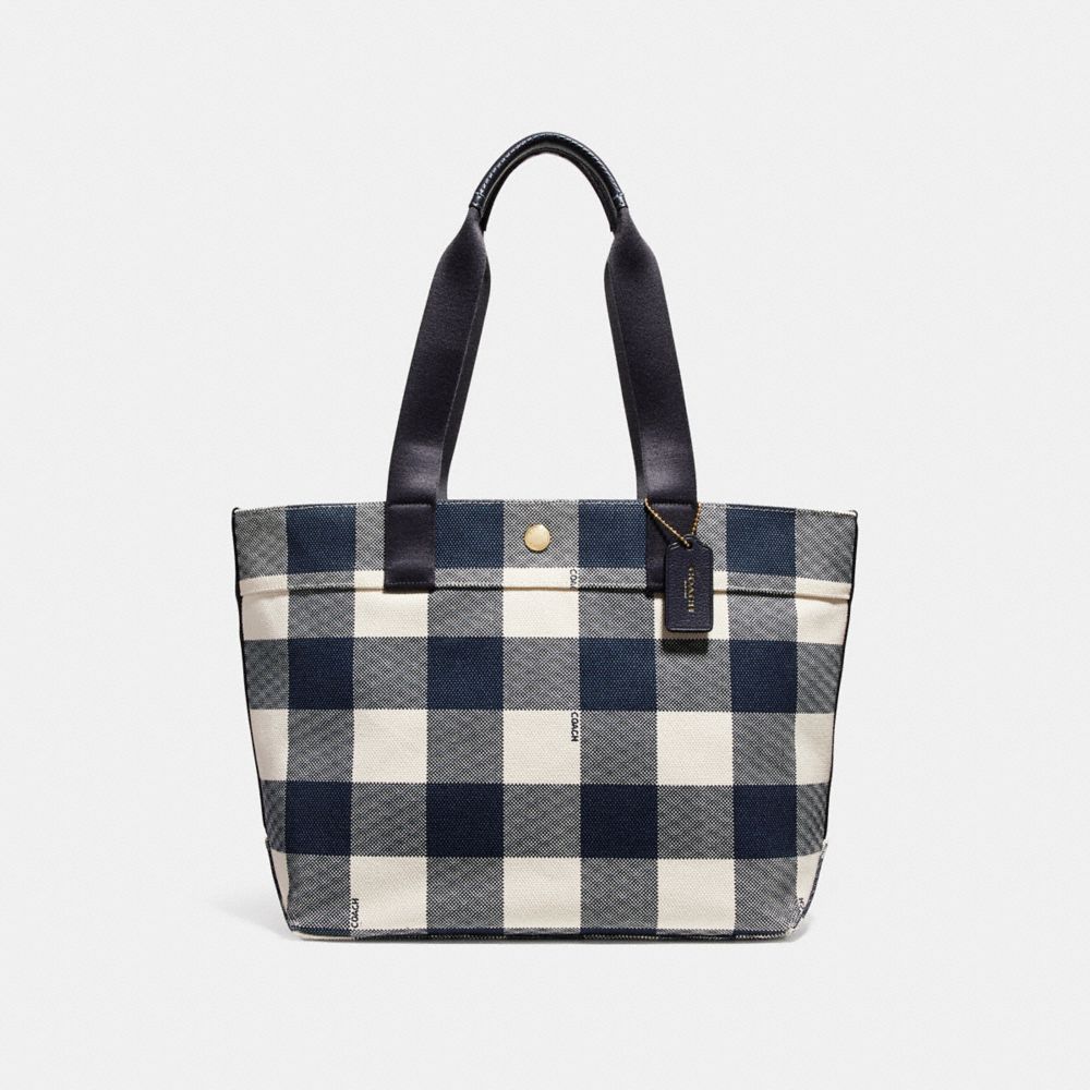 COACH FACTORY OUTLET PRICE CHART - F25919 - TOTE WITH BUFFALO PLAID PRINT - MIDNIGHT MULTI/LIGHT GOLD