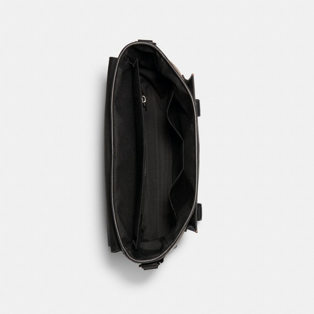 Signature coated canvas and smooth calf leather| Inside zip, cell phone and multifunction pockets| Inside tech sleeve| Speedclip closure, fabric lining| Handle with 3" drop| Outside zip and magnetic snap pockets| Adjustable strap with 25" drop for shoulder or crossbody wear| 13" (L) x 9" (H) x 4 1/4" (W)