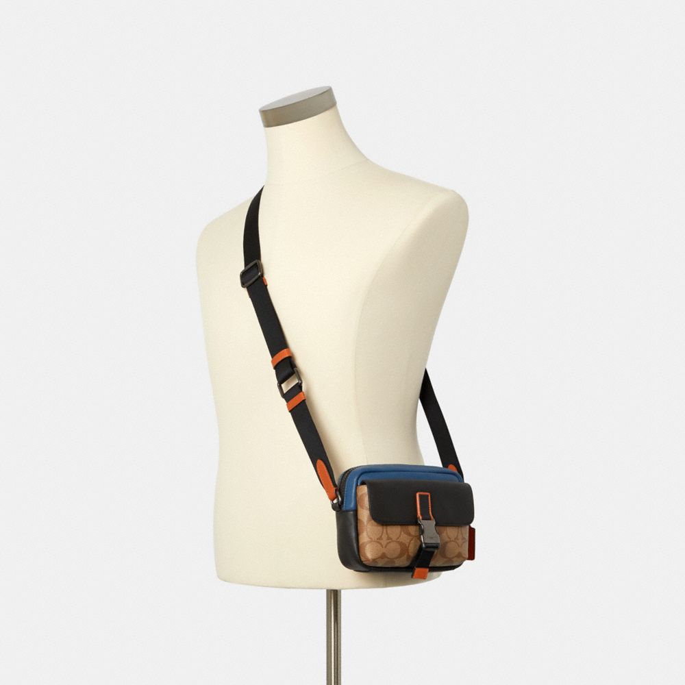TRACK POUCH CROSSBODY IN COLORBLOCK SIGNATURE CANVAS (COACH C3136)