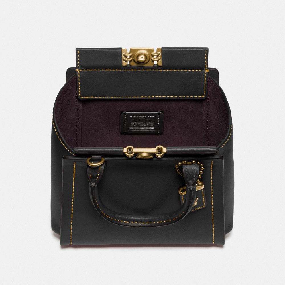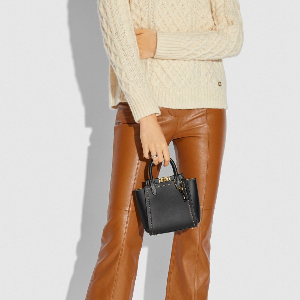 Glovetanned leather| Turnlock closure, fabric lining| Handles with 2 1/2" drop| Detachable strap with 21 1/2" drop for shoulder or crossbody wear| Instantly change the look of your bag with an interchangeable strap.| Four protective feet at base| 6 3/4" (L) x 7 1/2" (H) x 3 1/4" (W)| Also available in other sizes