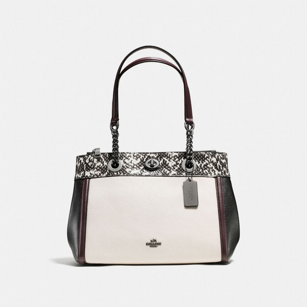 TURNLOCK EDIE CARRYALL IN COLORBLOCK WITH SNAKESKIN DETAIL (COACH F11874)