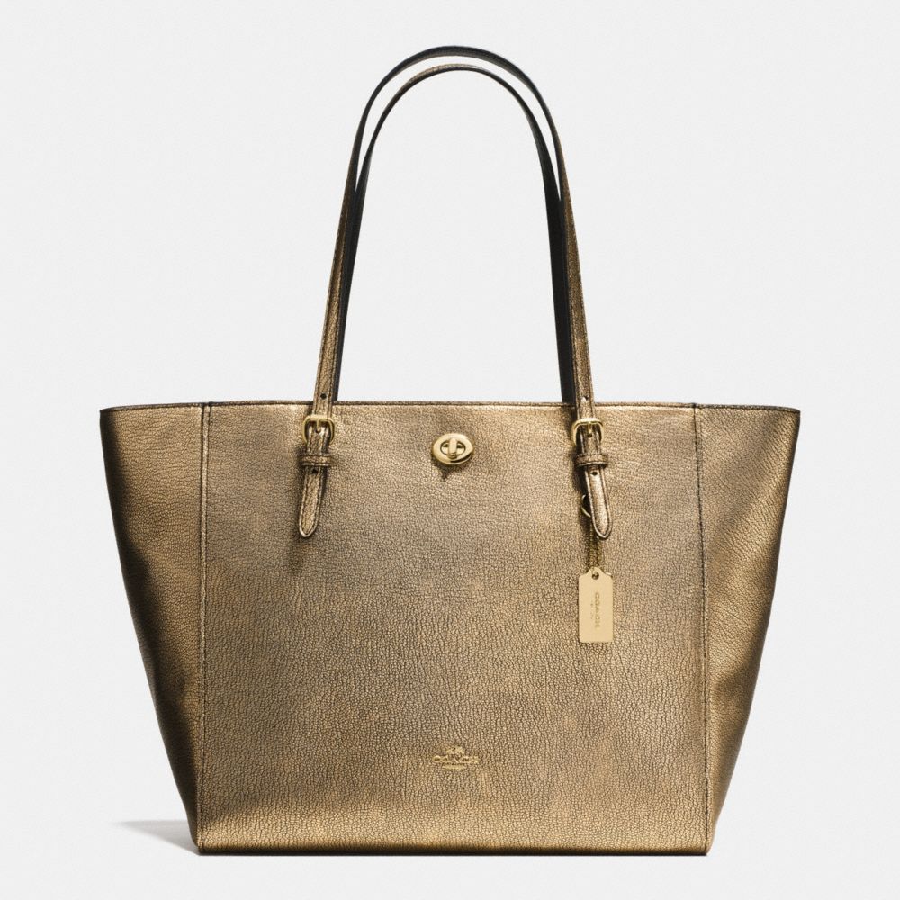 TURNLOCK TOTE IN METALLIC PEBBLE LEATHER (COACH F36458)
