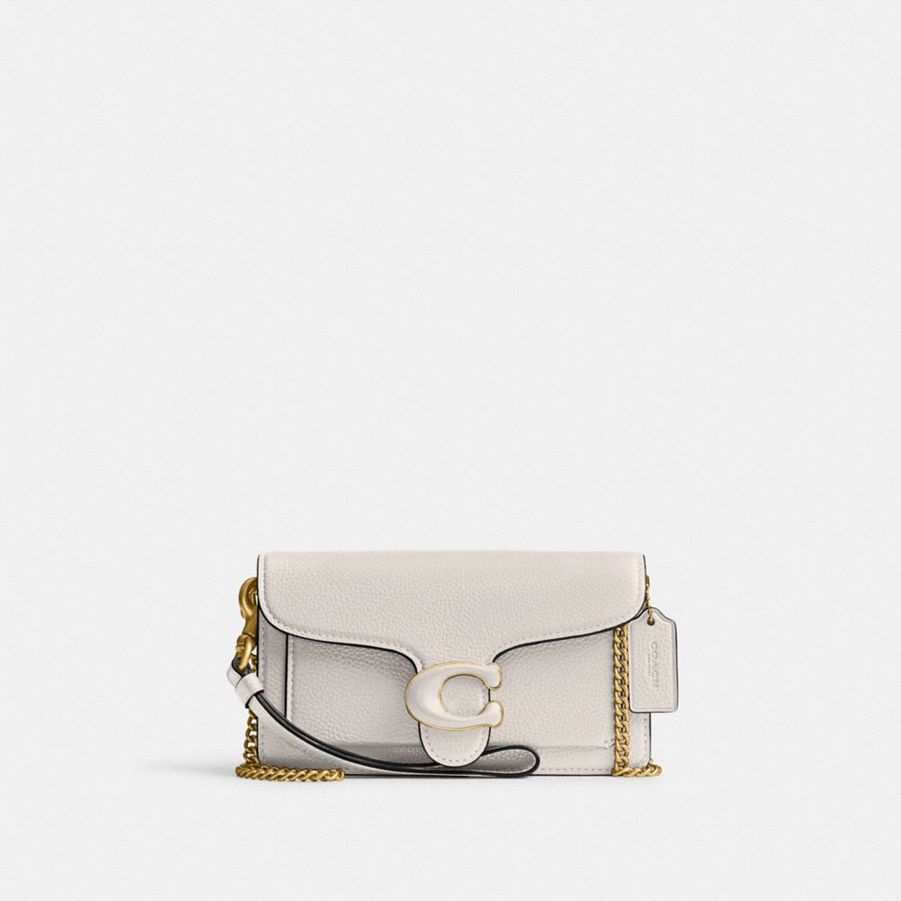 A modern take on an archival 1970s Coach design, our structured Tabby wristlet is crafted of polished pebble leather. Finished with our Signature hardware, it's perfectly sized for cards, cash and a phone with an exterior slip pocket for easy access to essentials. The versatile style can be carried as a wristlet or a clutch and worn crossbody with the elegant chain strap, making it the perfect choice for both dressed up and casual looks.|Style No. CJ925|