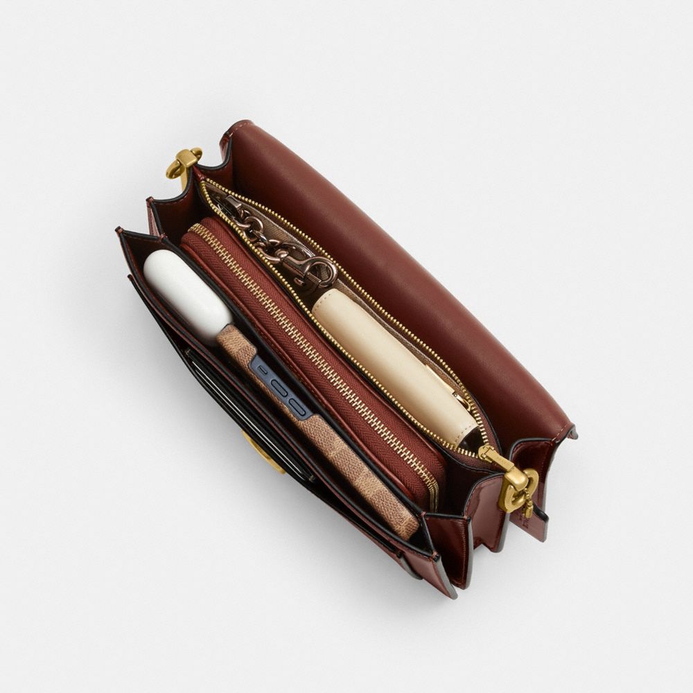 | Spazzolato leather and refined calf leather | Inside zip and multifunction pockets | Snap closure, fabric lining | Outside slip pocket | Detachable short strap with 7 3/4" drop | Detachable long strap with 21 1/2" drop for shoulder or crossbody wear | 10 1/4" (L) x 5 1/2" (H) x 2 3/4" (W)|Style No. CW631|
