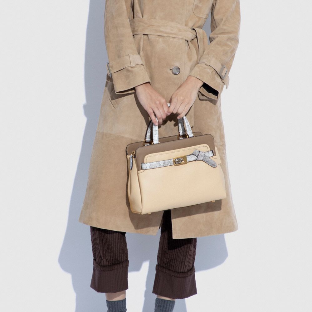 COACH FACTORY OUTLET PRICE CHART - C5317 - TATE CARRYALL 29 IN COLORBLOCK WITH SNAKESKIN DETAIL - BRASS/IVORY MULTI