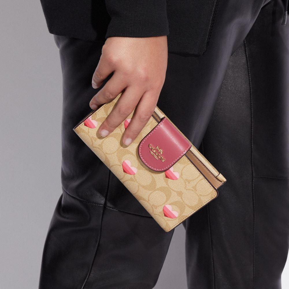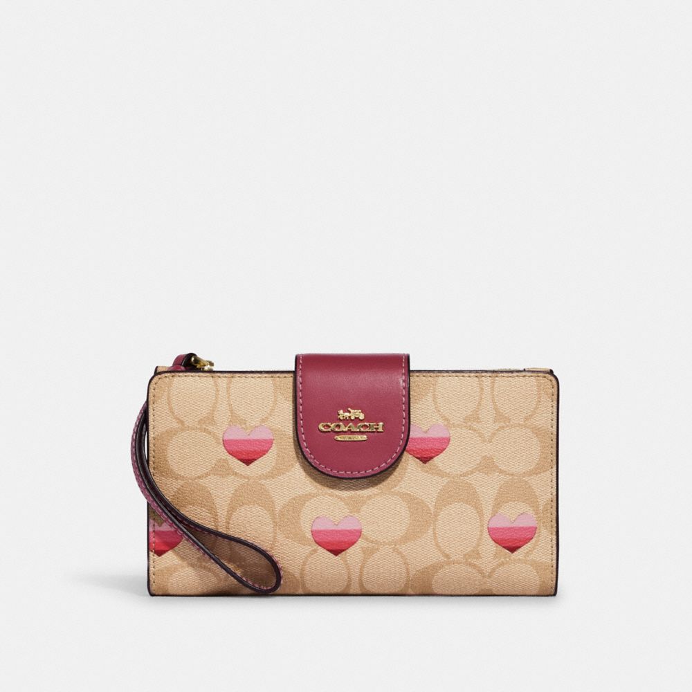 TECH WALLET IN SIGNATURE CANVAS WITH STRIPE HEART PRINT (COACH CA071)
