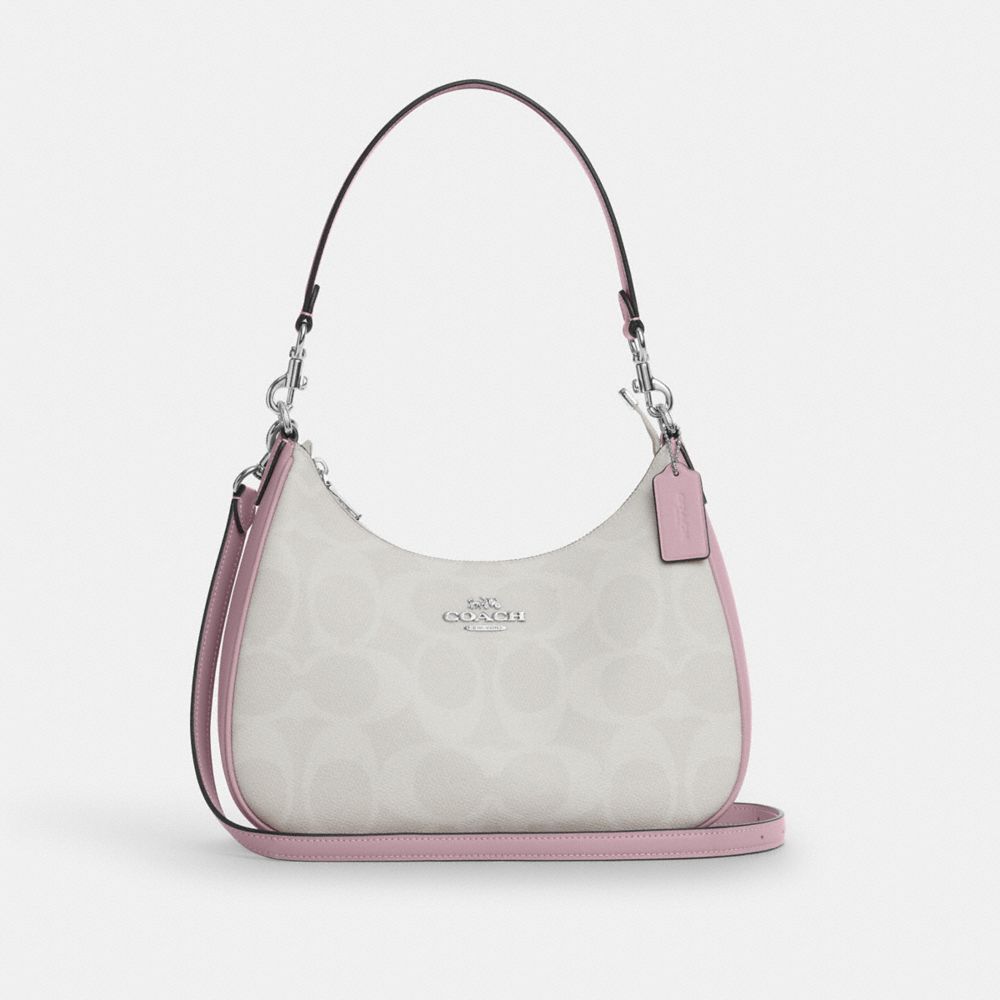COACH FACTORY OUTLET PRICE CHART - CAL52 - TERI HOBO BAG IN SIGNATURE CANVAS - SV/CHALK/CARNATION