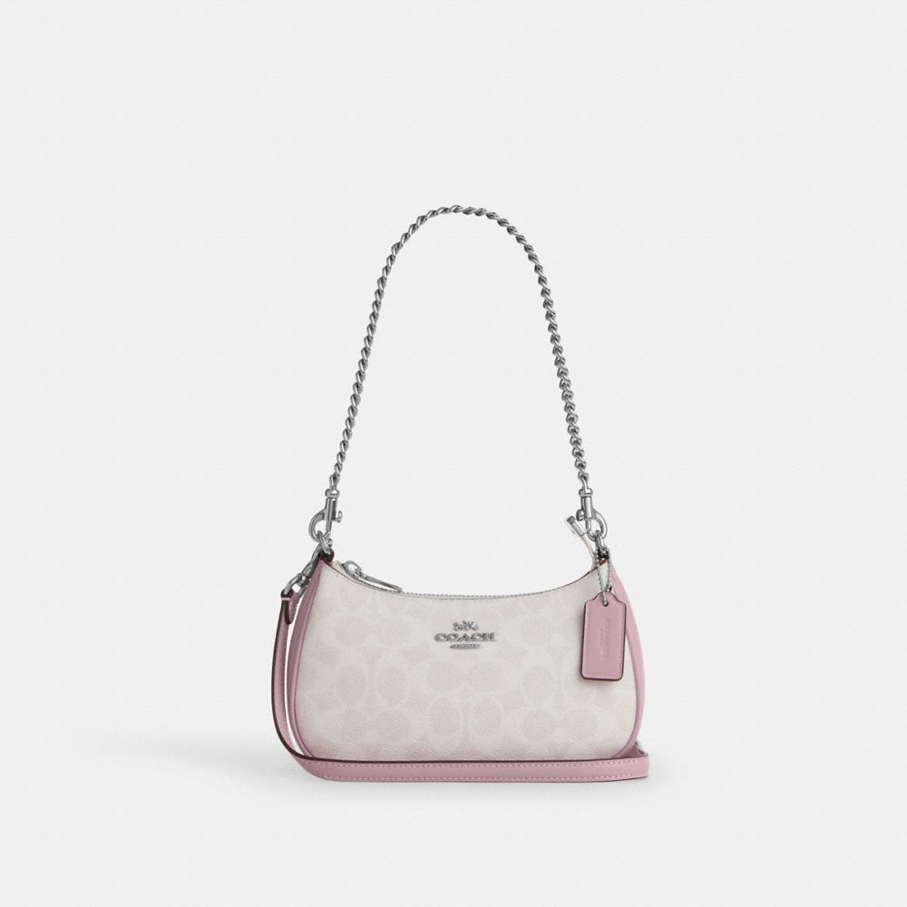 COACH FACTORY OUTLET PRICE CHART - CW323 - TERI MINI CROSSBODY BAG IN SIGNATURE CANVAS - SV/CHALK/CARNATION