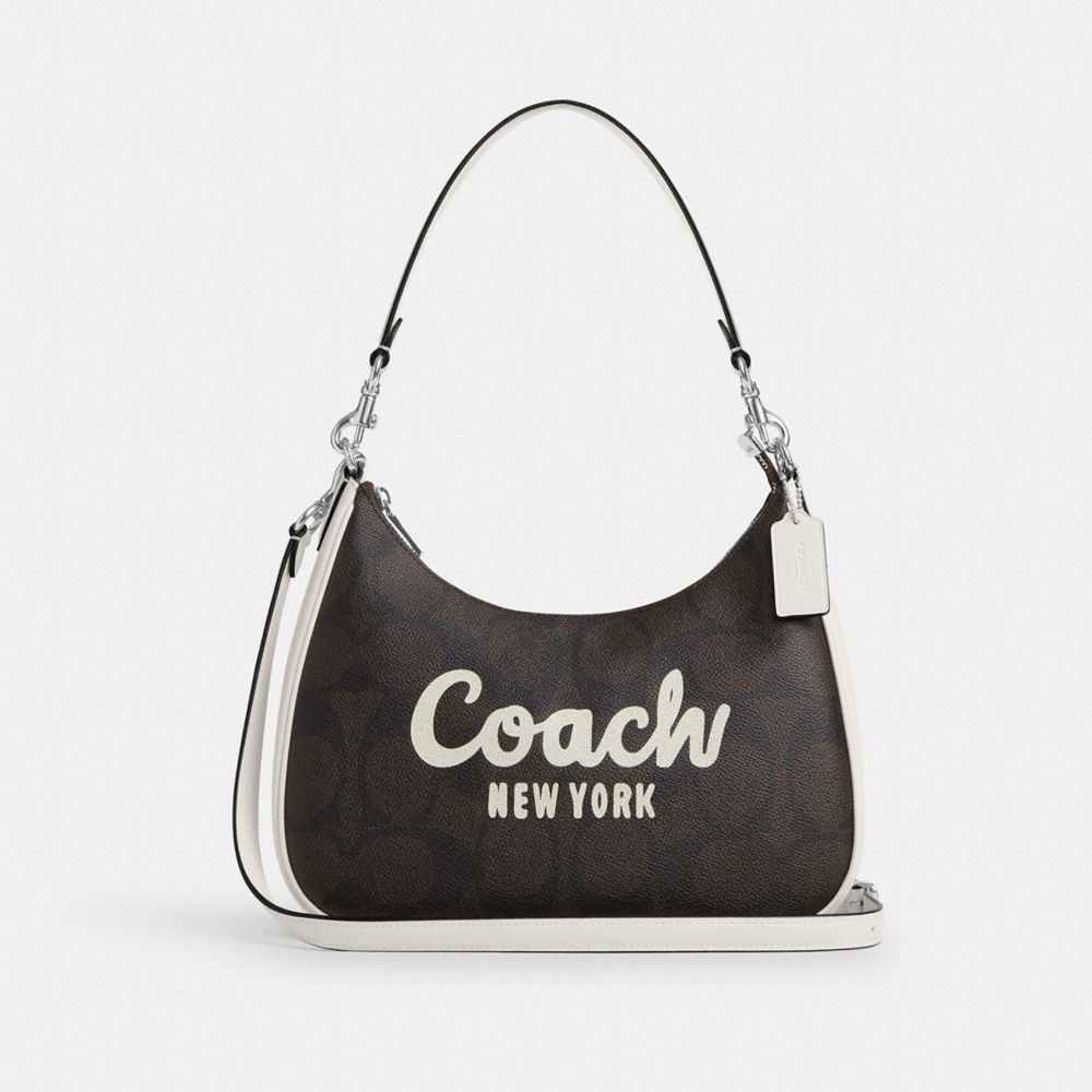 COACH FACTORY OUTLET PRICE CHART - CAG21 - TERI HOBO IN SIGNATURE CANVAS WITH COACH GRAPHIC - SILVER/WALNUT/CHALK