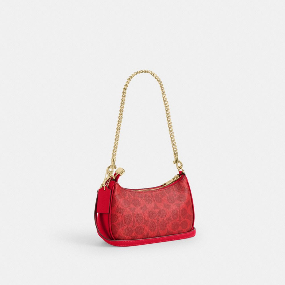 COACH FACTORY OUTLET PRICE CHART - CW323 - TERI MINI CROSSBODY BAG IN SIGNATURE CANVAS - GOLD/BOLD RED