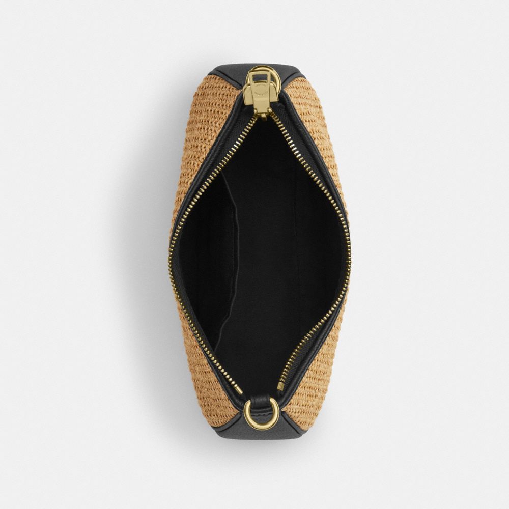 | Straw and refined pebble leather | Inside multifunction pocket | Zip-top closure, fabric lining | Detachable handle with 8 1/2" drop | Detachable strap with 22 3/4" drop for shoulder or crossbody wear | 9 1/2" (L) x 6" (H) x 3" (W)|Style No. CAL90|