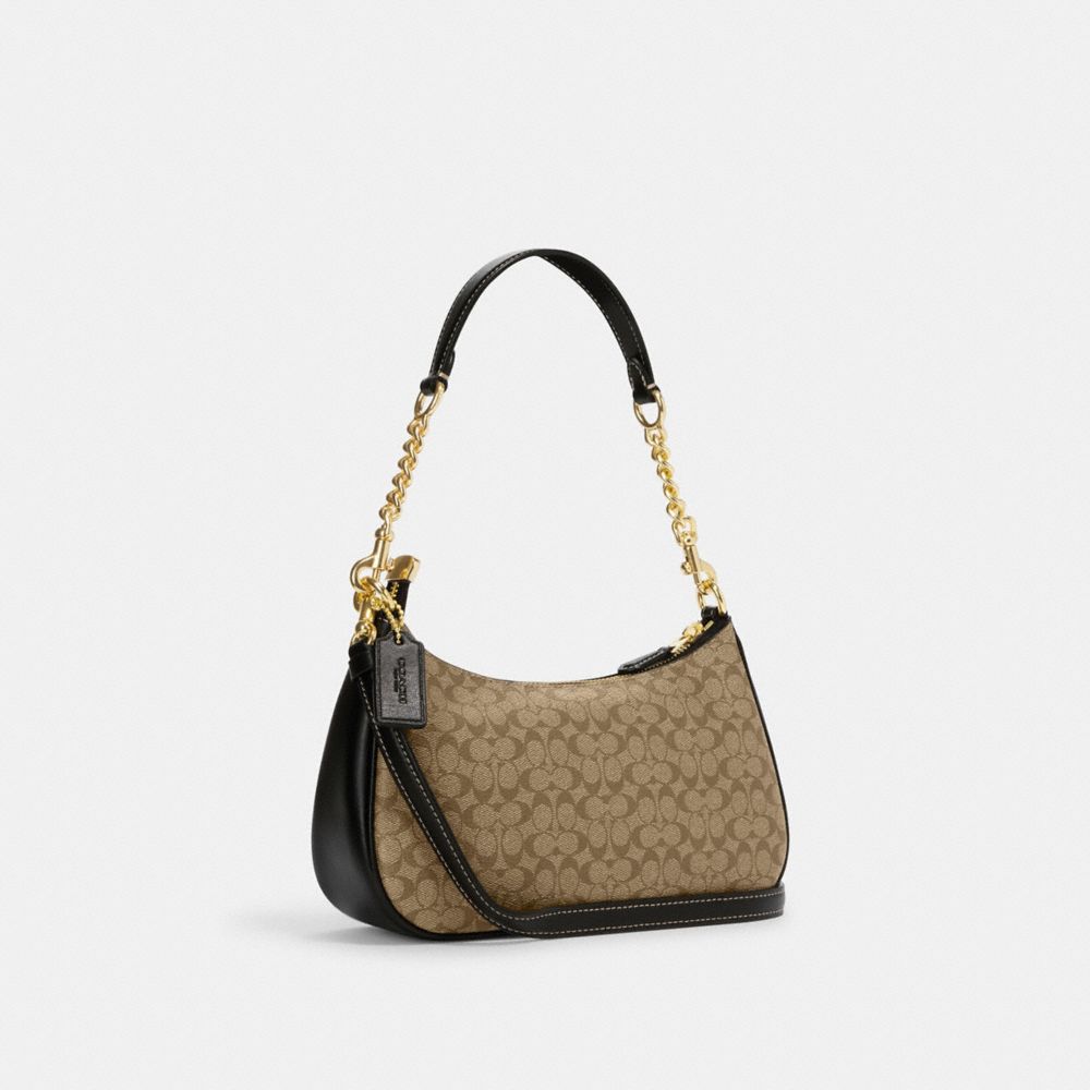 COACH FACTORY OUTLET PRICE CHART - CJ941 - TERI SHOULDER BAG IN SIGNATURE CANVAS - GOLD/KHAKI/BLACK