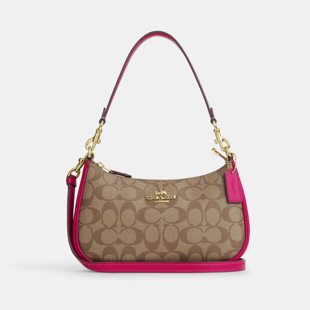 COACH FACTORY OUTLET PRICE CHART - CM714 - TERI SHOULDER BAG IN SIGNATURE CANVAS - IM/KHAKI/CERISE