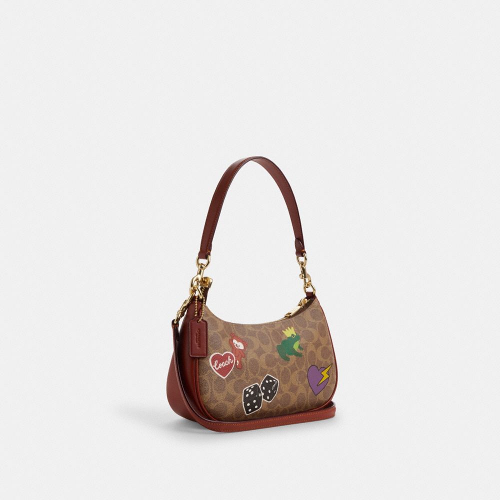 COACH FACTORY OUTLET PRICE CHART - CV939 - TERI SHOULDER BAG IN SIGNATURE CANVAS WITH STICKER PRINT - GOLD/TAN MULTI