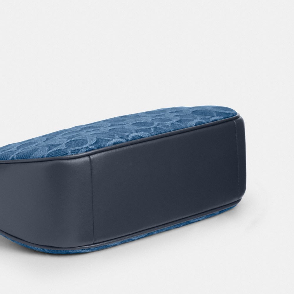 Signature denim, vachetta leather and smooth leather| Inside multifunction pocket| Zip-top closure, fabric lining| Detachable handle with 8 1/2" drop| Detachable strap with 22 3/4" drop for shoulder or crossbody wear| 9 1/2" (L) x 6" (H) x 3" (W)| Exclusive of trim, this denim style is crafted of cotton sourced from farms that use regenerative agricultural practices—those that help to maintain and rejuvenate land, increase biological diversity and soil health and could lead to increased carbon absorption|Style No. CDQ56